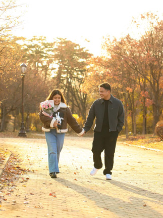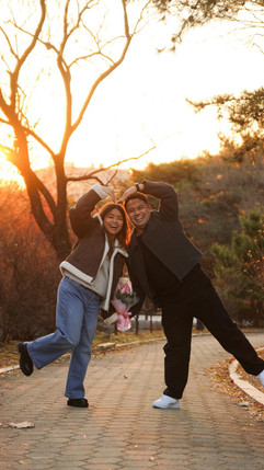 A winter surprise proposal at Yeouido Park during golden hour is calm, romantic, and deeply emotional. The open sky, quiet scenery, soft sunset light, and genuine reactions create memories that last a lifetime. It’s not just about the photos — it’s about preserving one of the most important moments of your life in the most natural way possible. :)