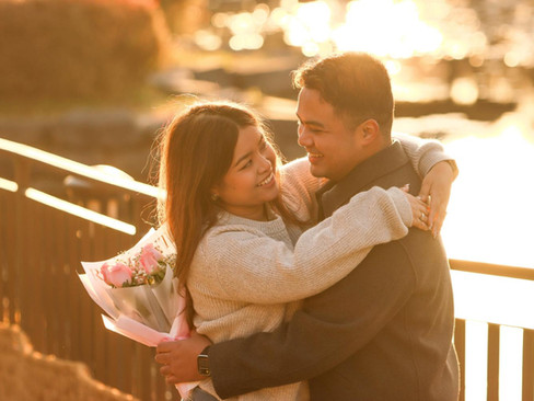 Right after the proposal, I reveal myself and we continue with a romantic couple portrait photoshoot afterwards during the golden sunset time.